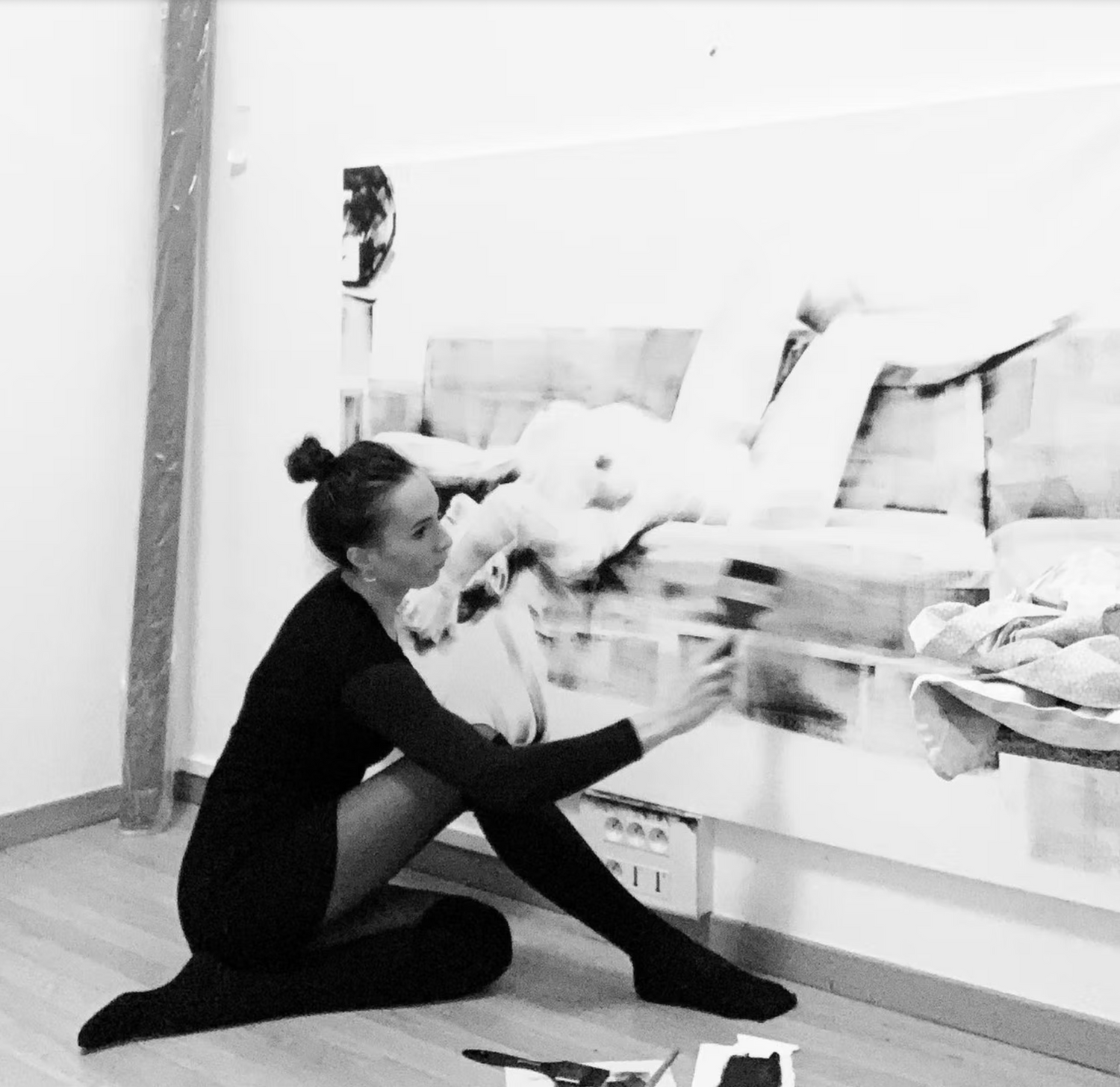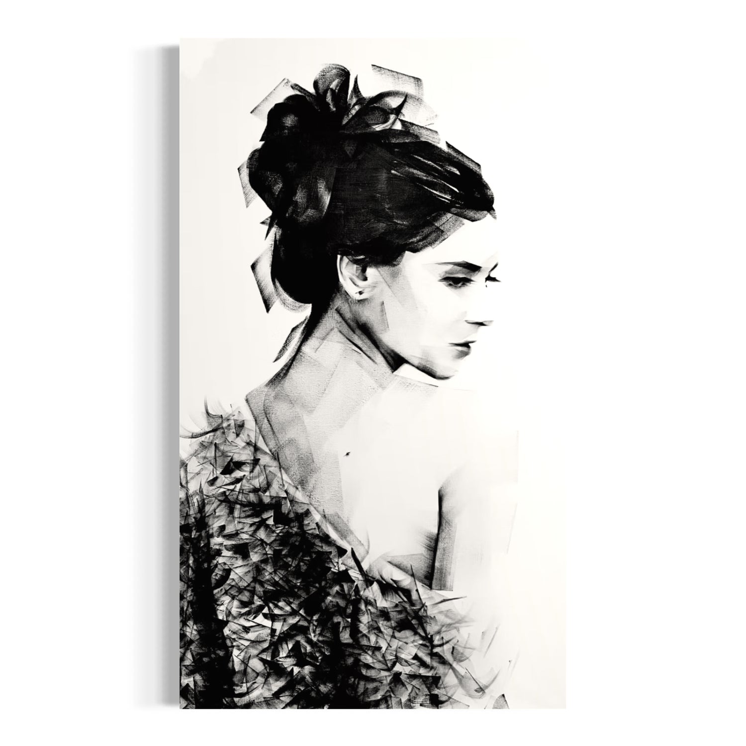 Elle peint exclusivement à l’huile noire, appliquée en larges coups, en densité ou par touches effleurées, sans dilution. Son geste modelé sculpte l’ombre, ralentit la lumière, tout en laissant le vide éclatant retransparaître. Le contraste entre le raffinement du détail et la crudité du trait devient sa signature ; un équilibre entre le visible et le suggéré. À l’ère de l’image instantanée numérique, elle revendique une peinture qui traduit l’instant sublime.